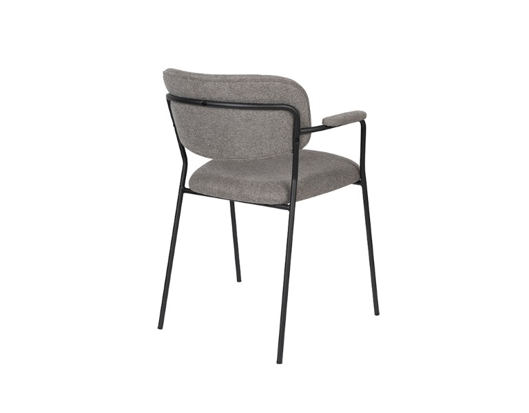 Mixed fabrix upholstery (95% polyester, 5% nylon); Plywood seat and back with PU foam; 40.000 Martindale, colour fastness 4-4,5; Foam density 25; Powder coated steel frame; Maximum weight load: 150 kg.